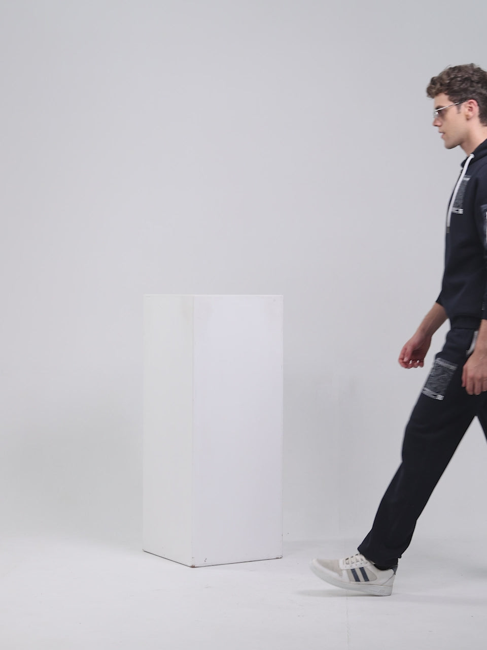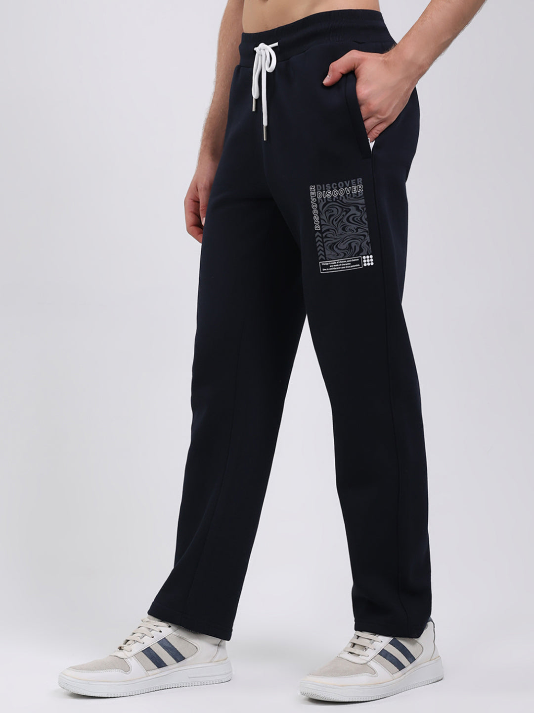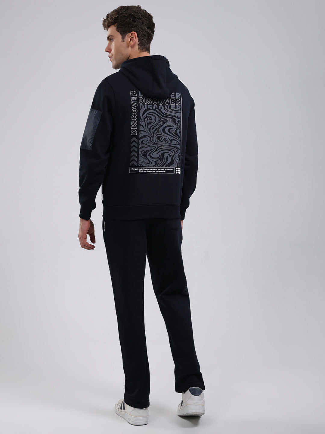Men Navy Blue Printed Round Neck Full Sleeve Winter Tracksuit