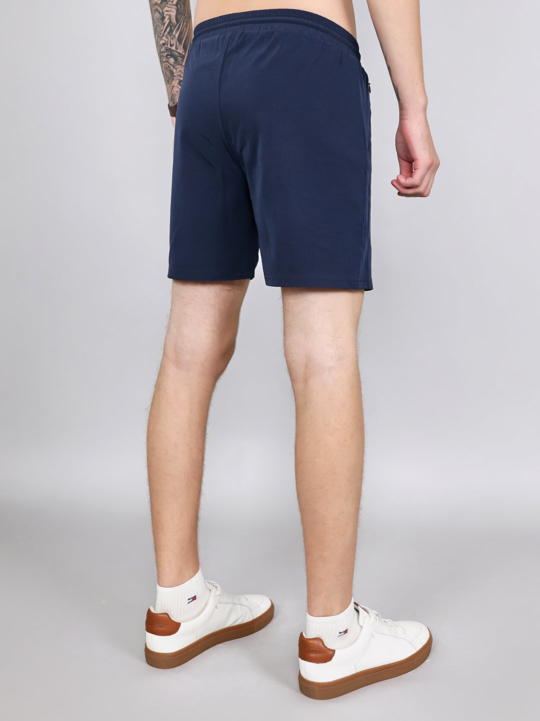 Men Navy Blue Solid Regular Fit Shorts