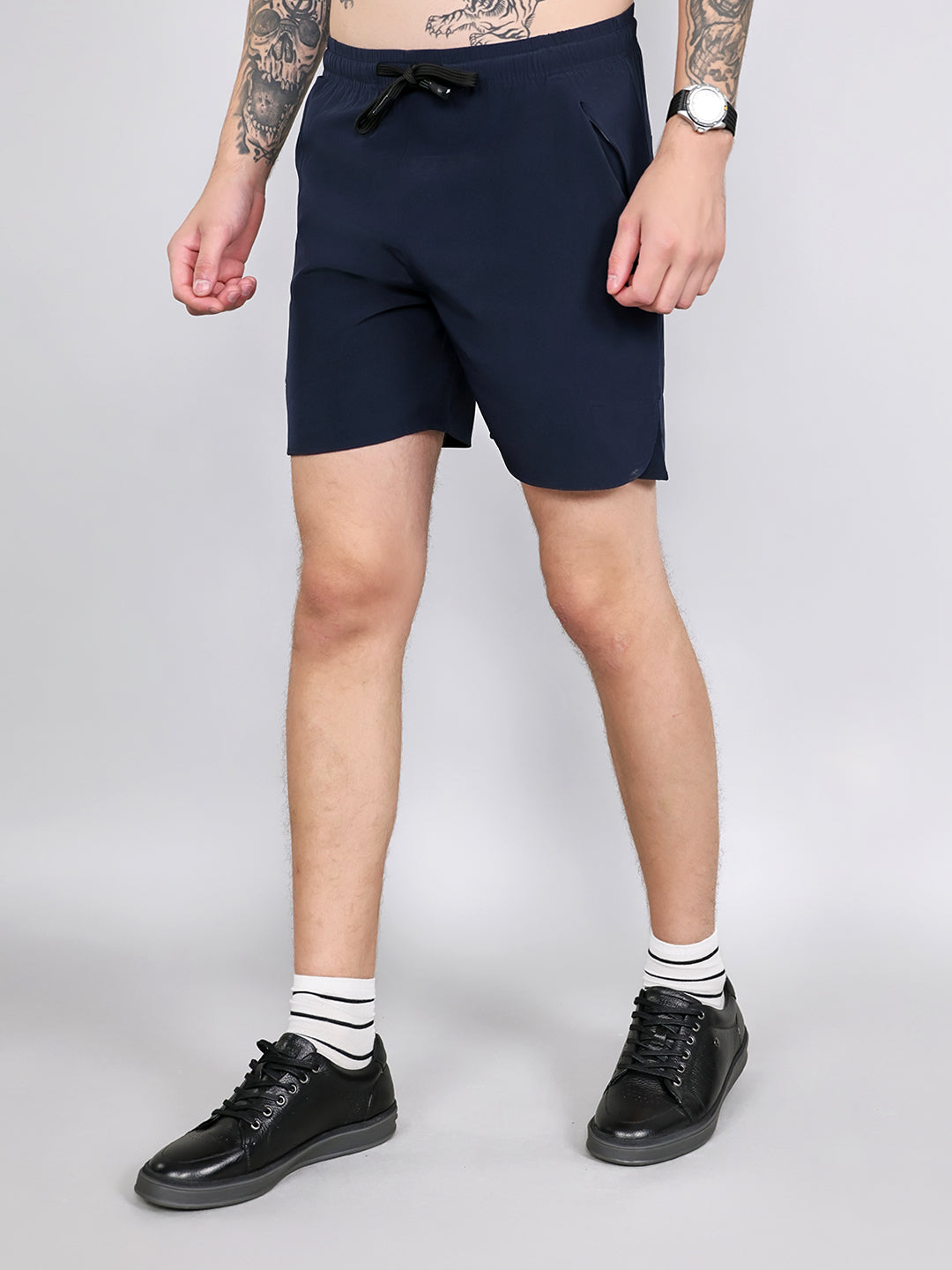 Men Navy Blue Solid Regular Fit Shorts