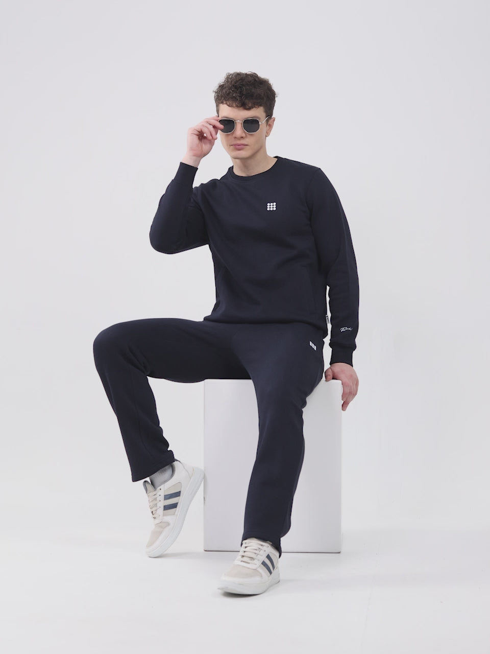 Men Navy Blue Solid Round Neck Sleeveless Winter Tracksuit