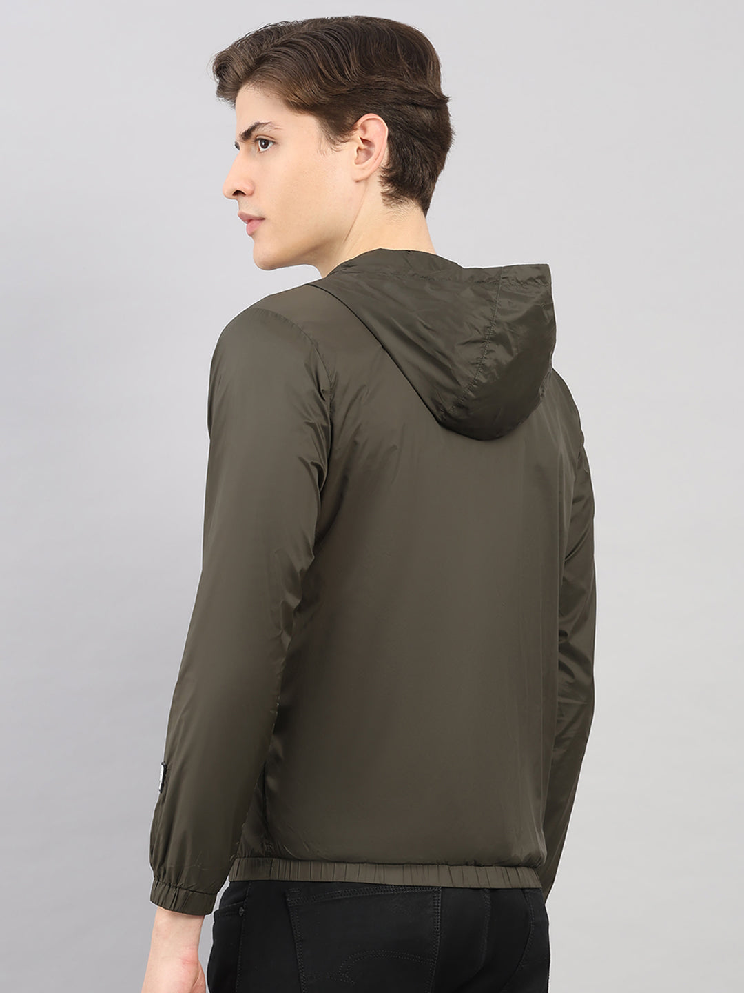 Men Navy Blue Solid Hooded Full Sleeve Reversible Jacket