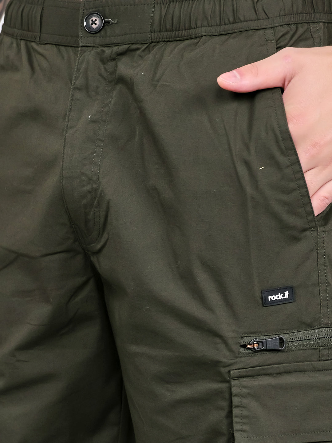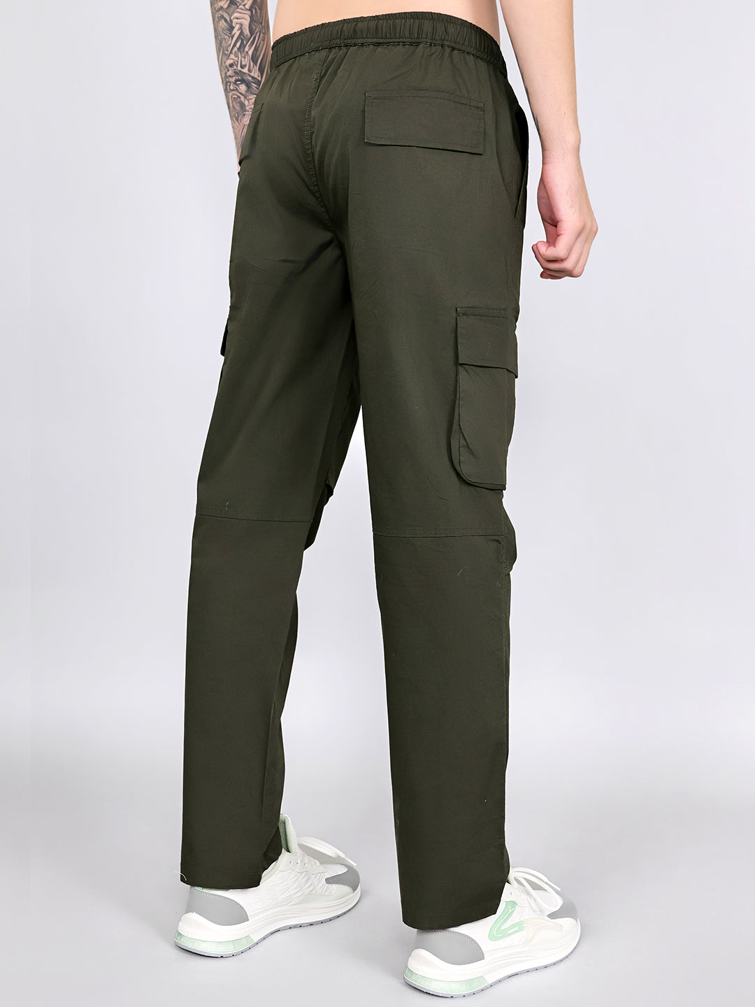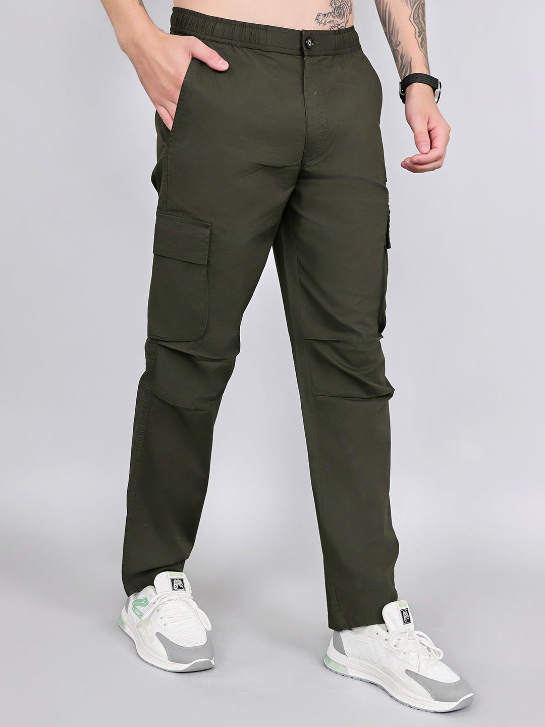 Men Olive Solid Regular Fit Cargo