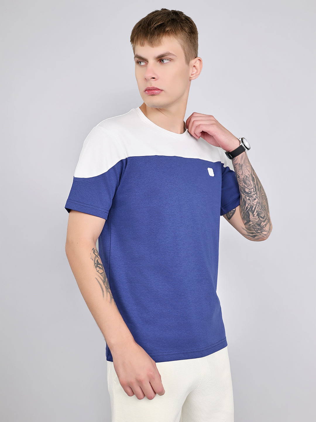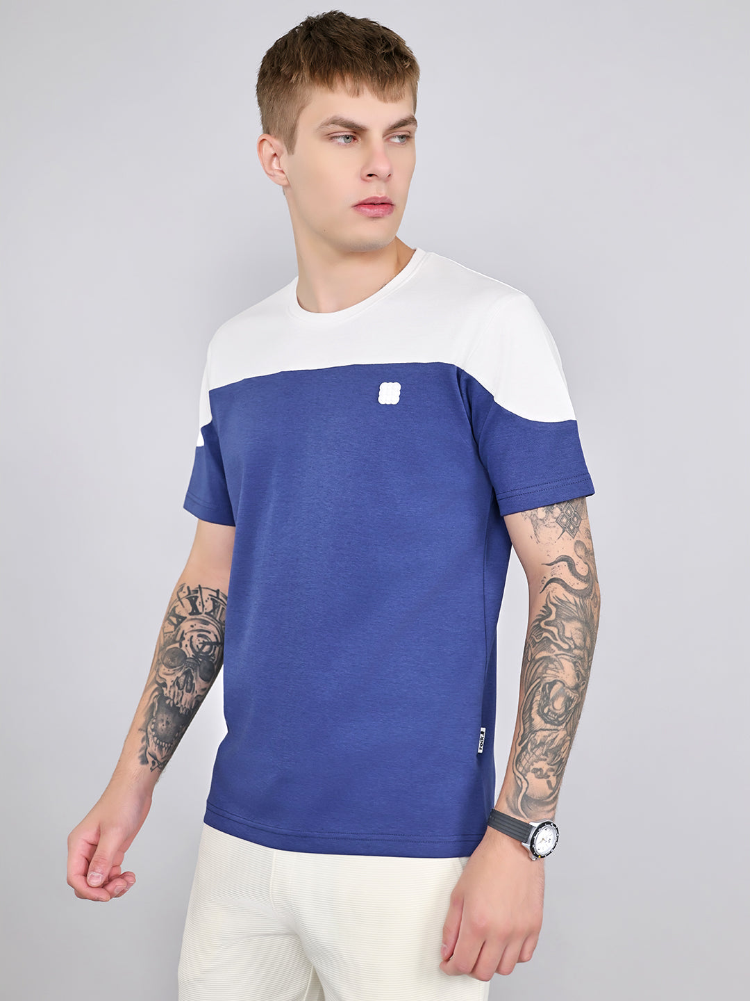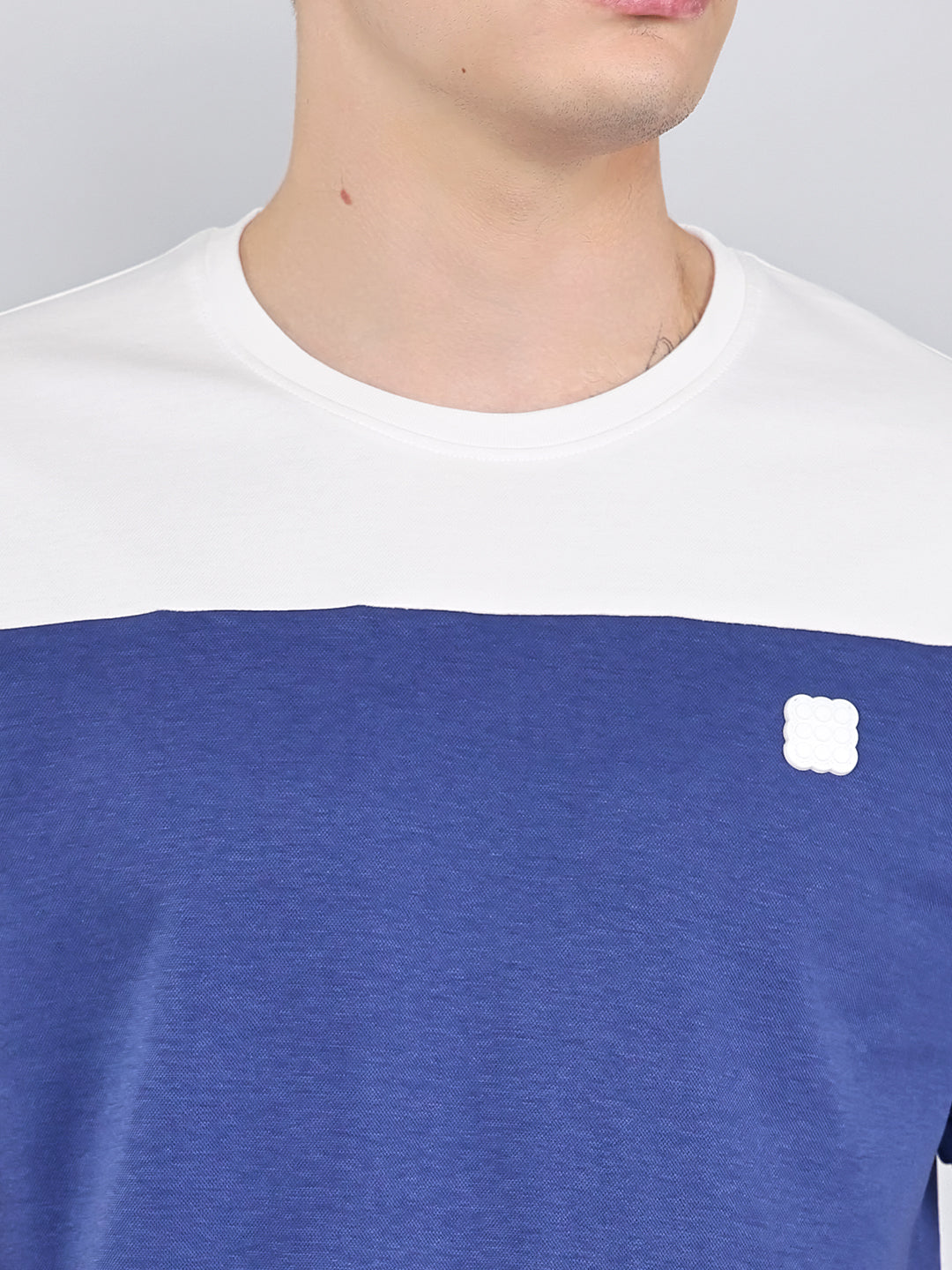 Men Navy Blue Printed Round Neck Drop Shoulder Half Sleeve T-Shirt