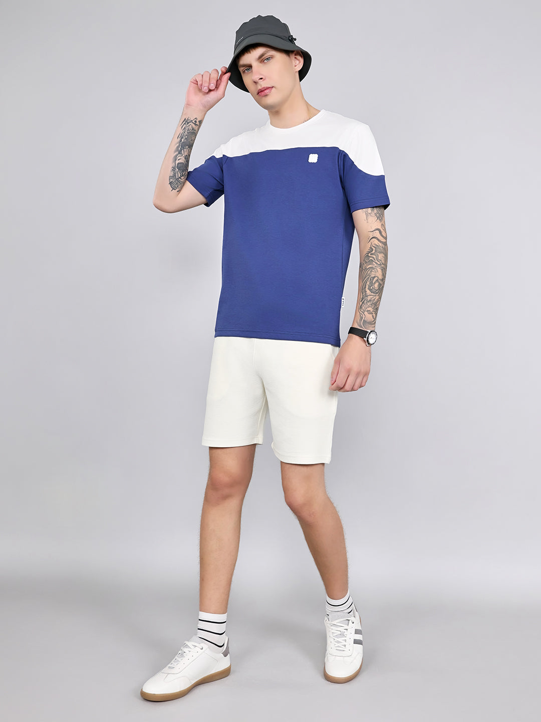 Men Off White Printed Round Neck Drop Shoulder Half Sleeve T-Shirt