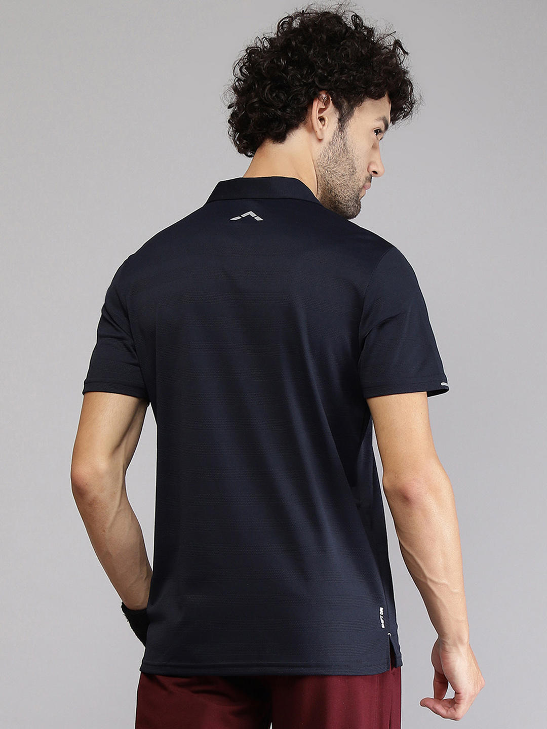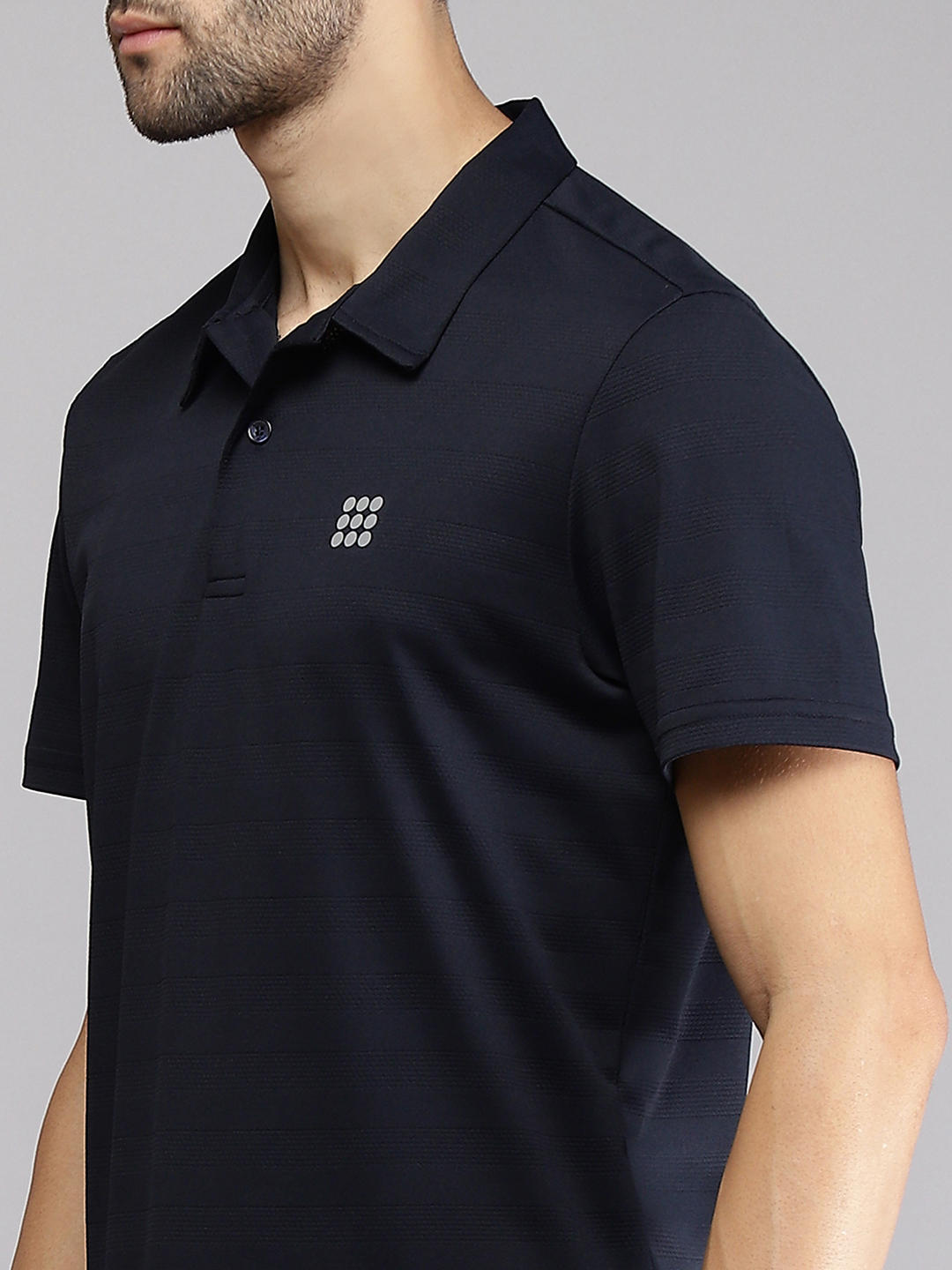 Men Navy Blue Printed Collar Half Sleeve T-Shirt