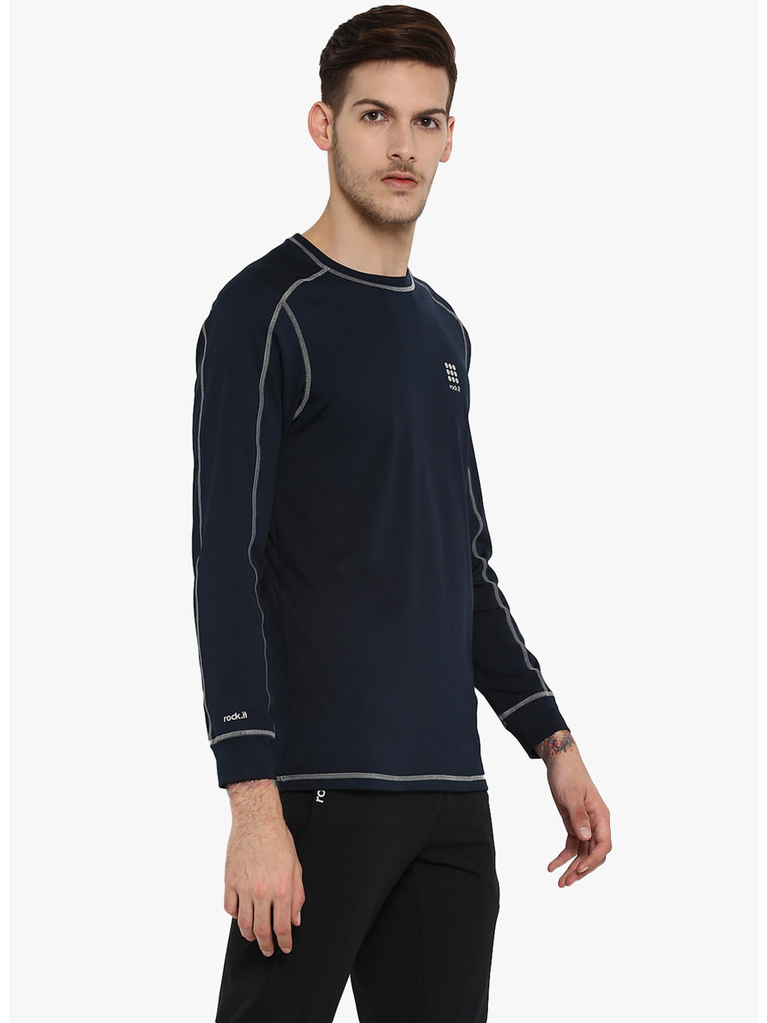 Men Navy Blue Round Neck Smart Fit T-Shirt