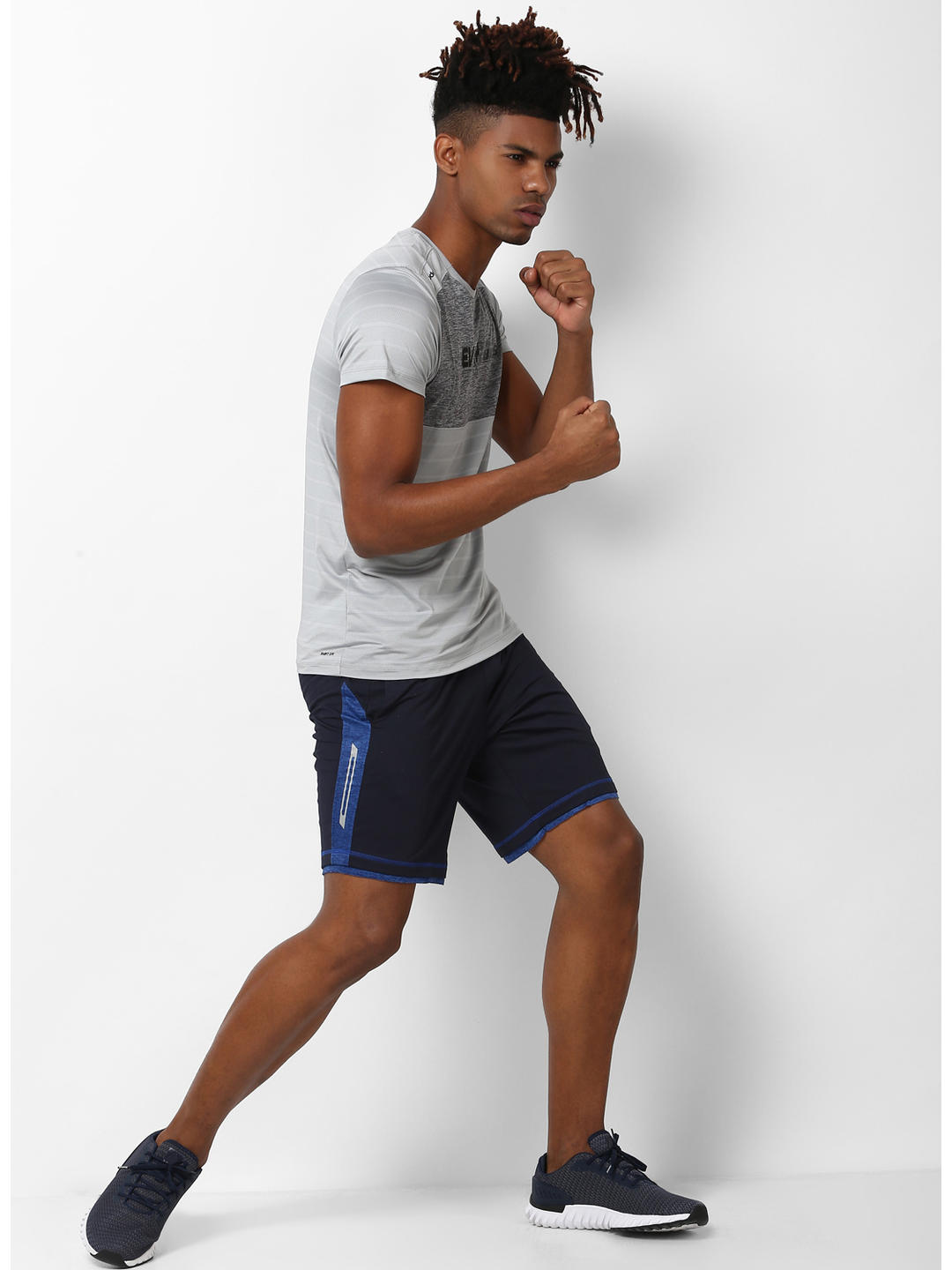Men White Self Design V Neck Half Sleeve Shorts Set