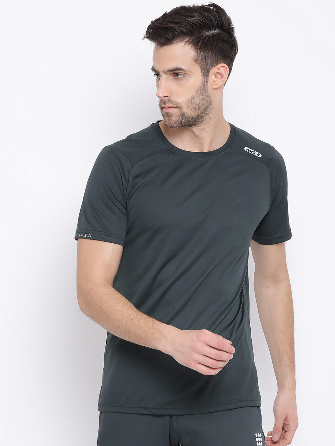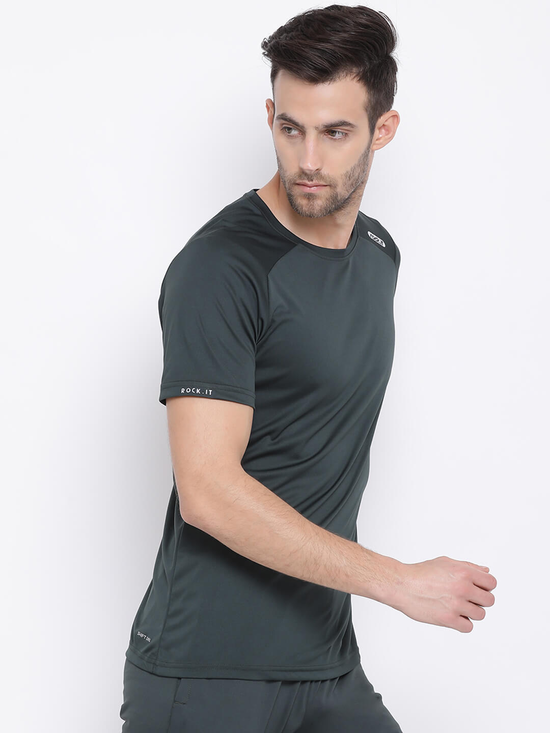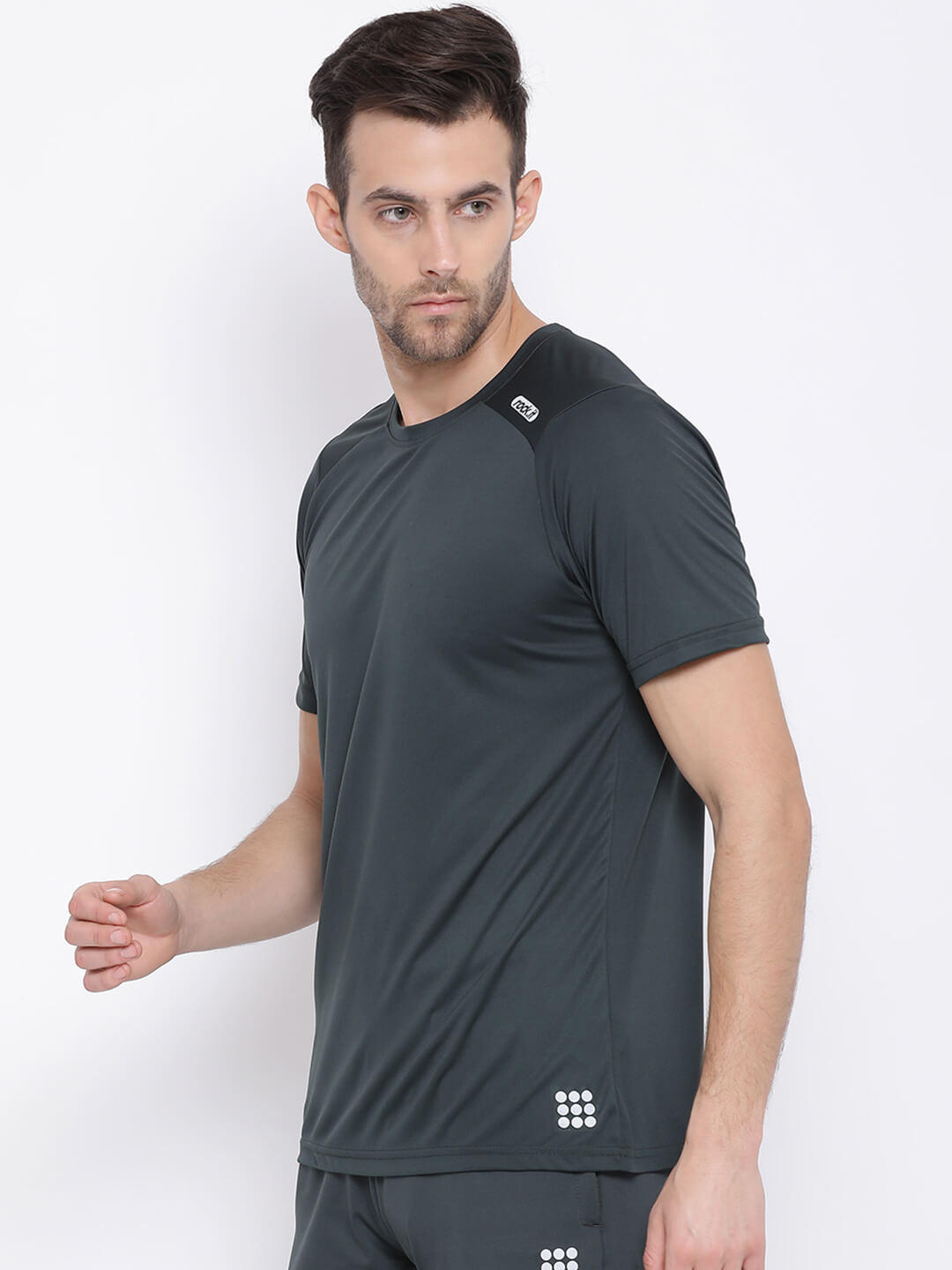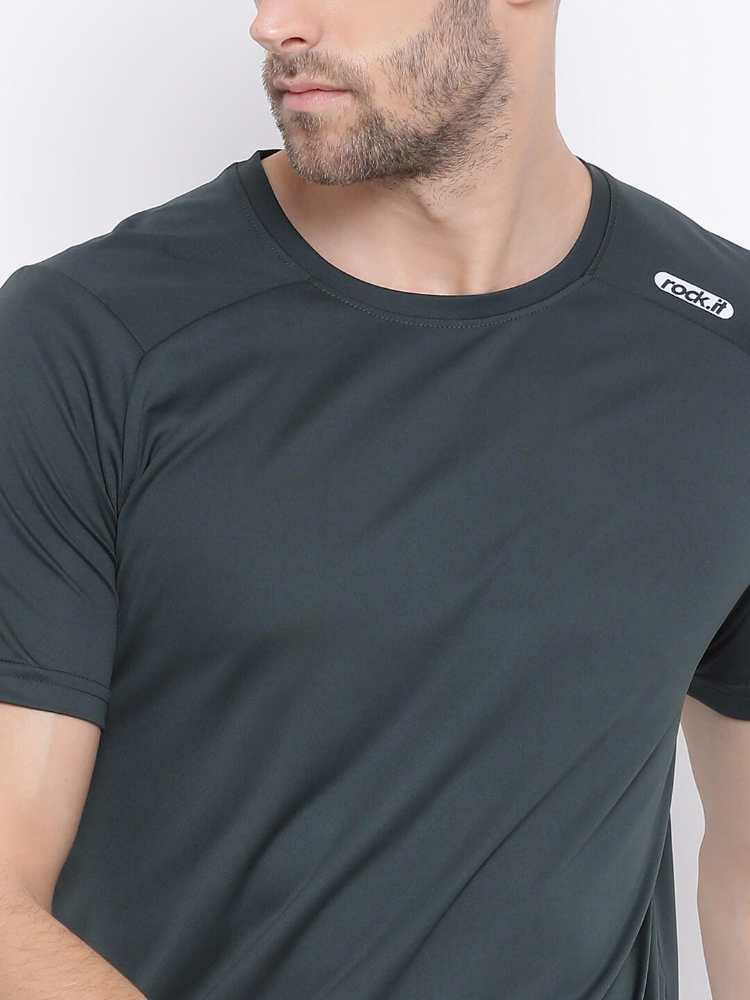 Men Grey Solid Round Neck Half Sleeve T-Shirt