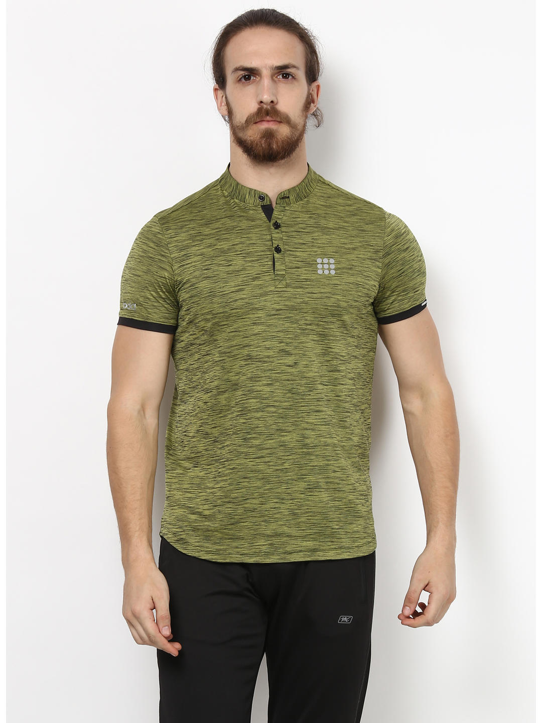 Men Neon Green Solid Collar Half Sleeve T-Shirt