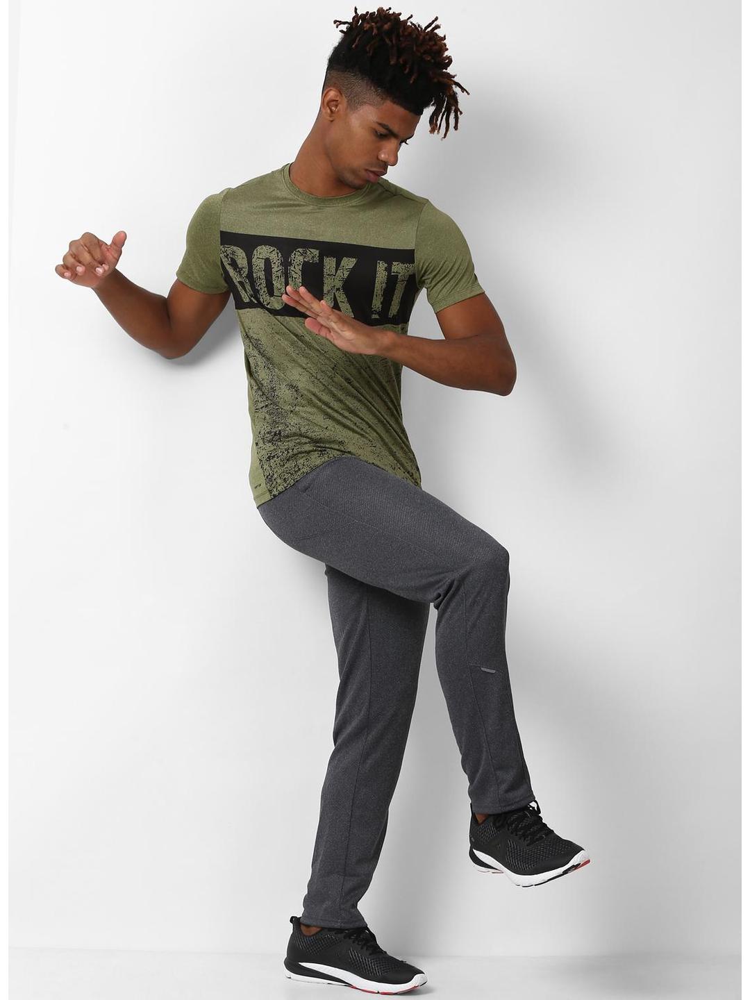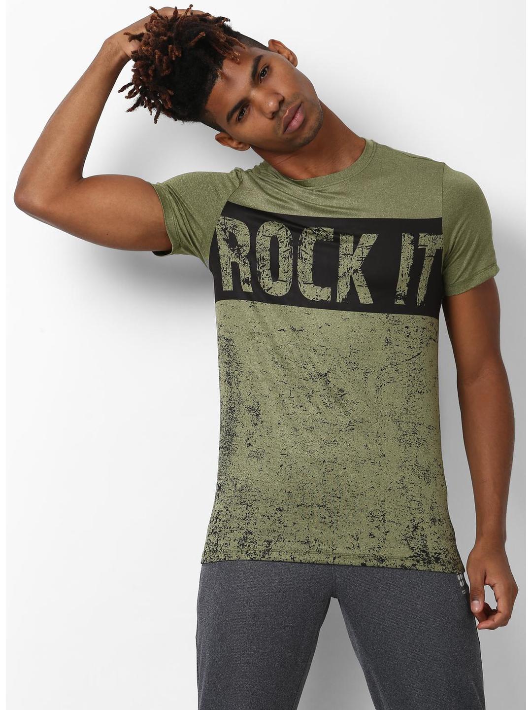 Men Olive Green Round Neck Smart Fit T-Shirt