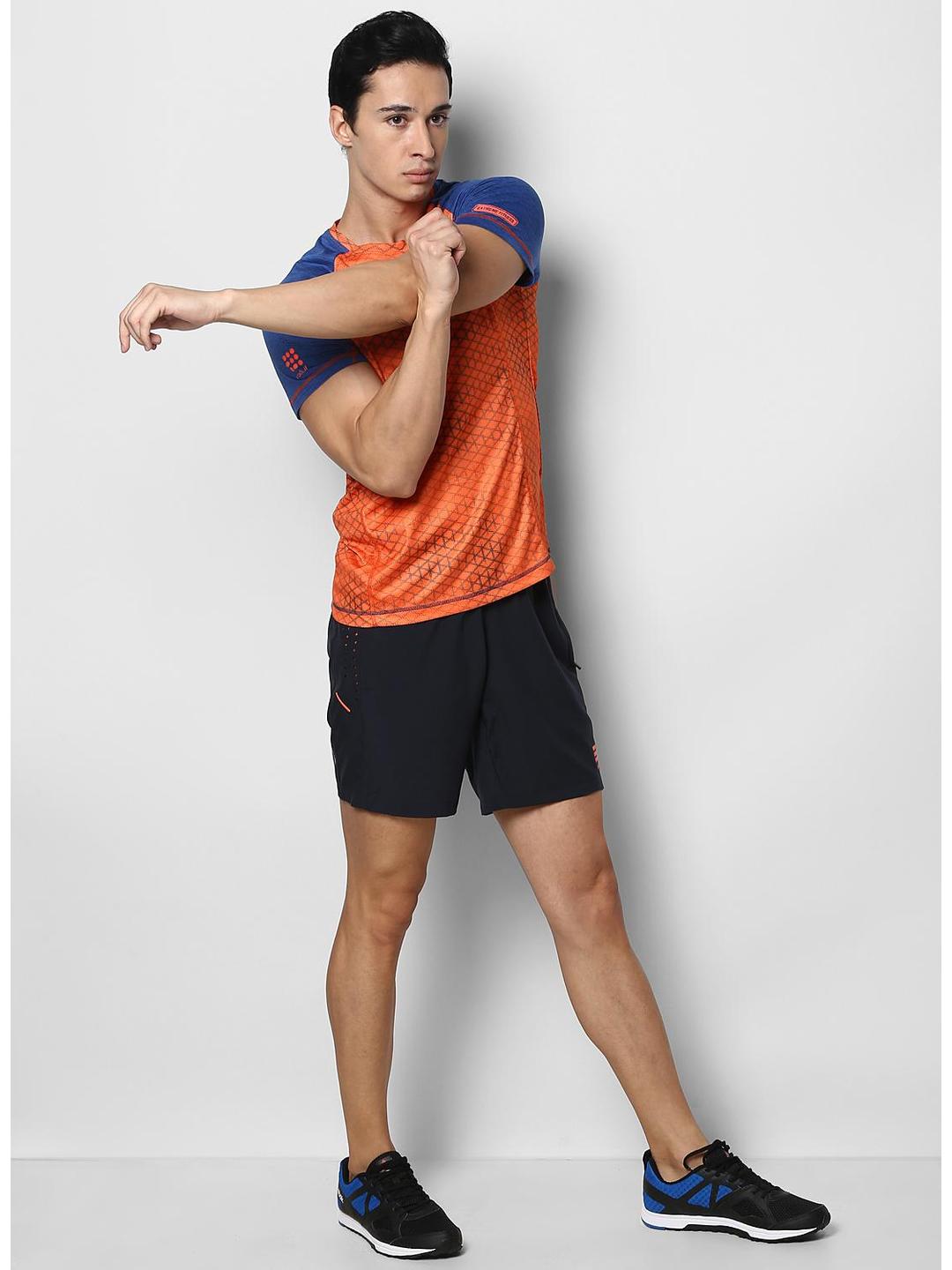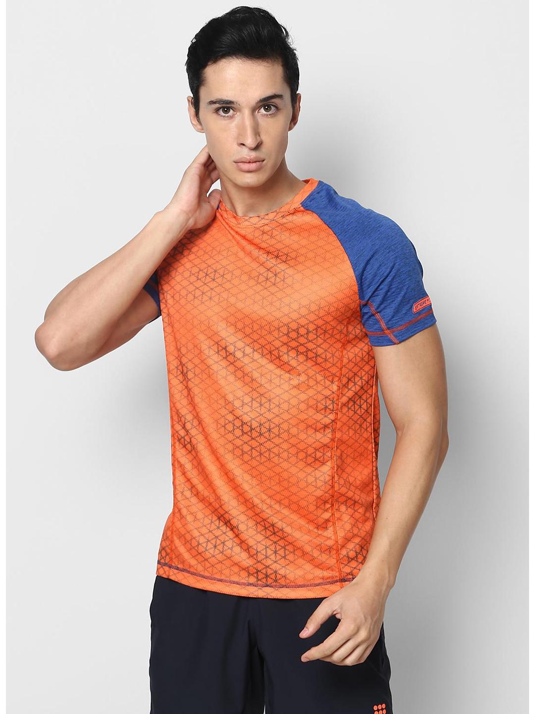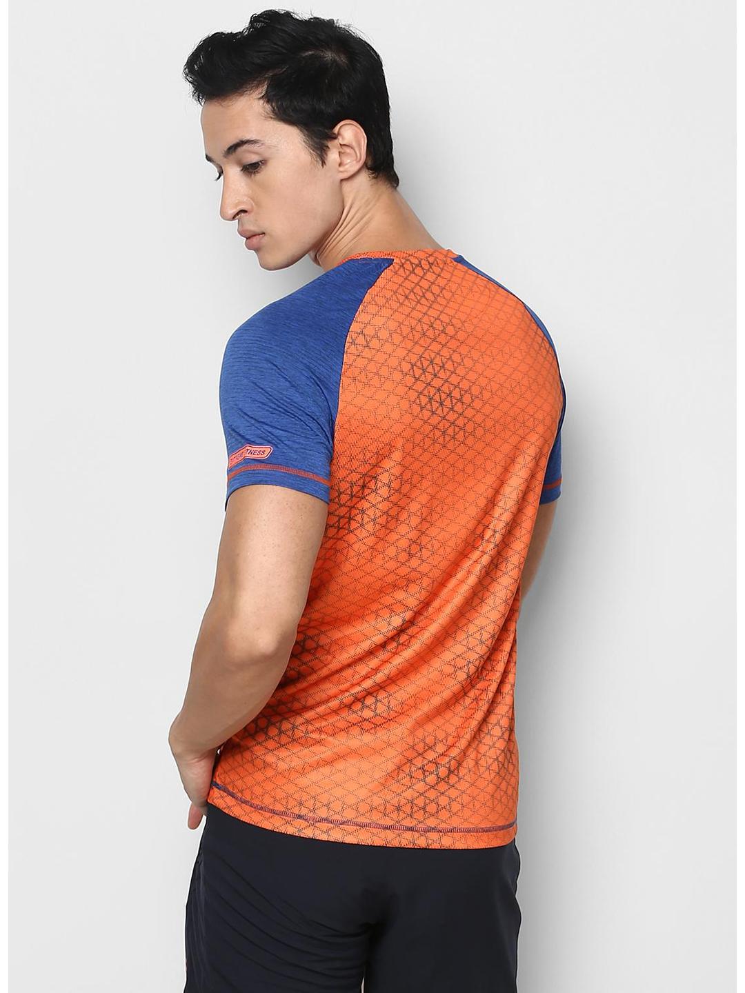Men Orange Blue Round Neck Smart Fit T-Shirt