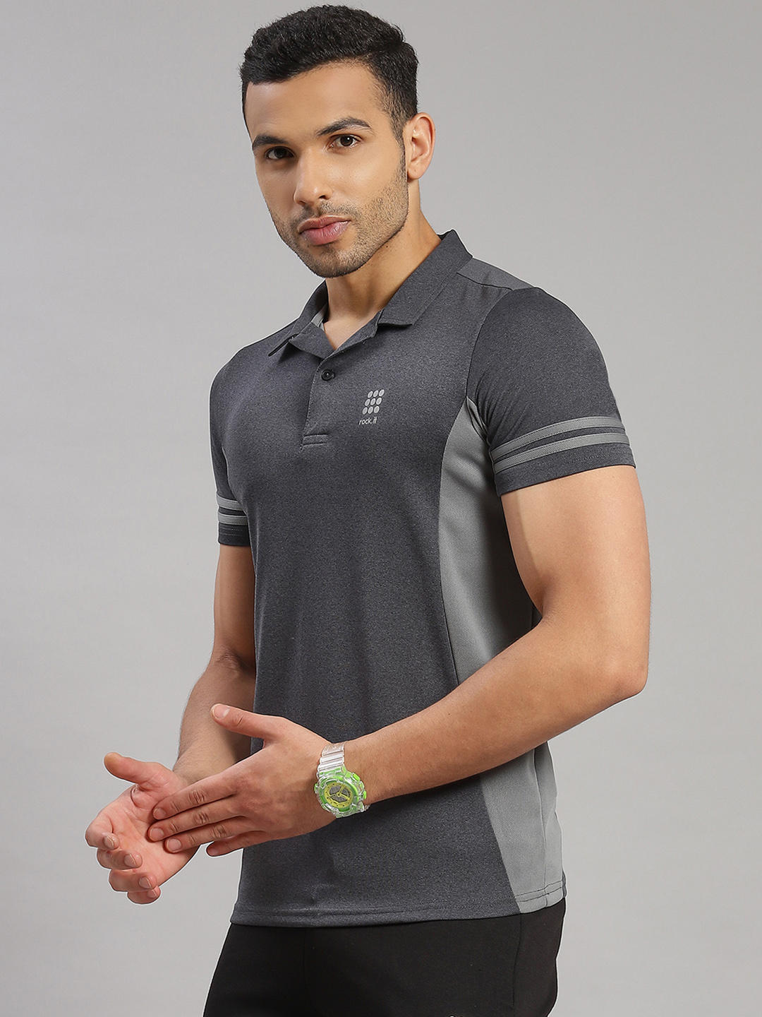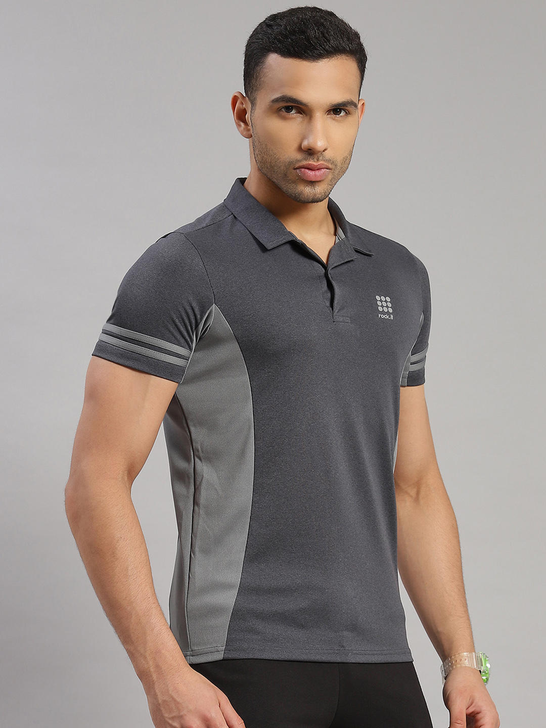 Men Grey Solid Round Neck Half Sleeve T-Shirt