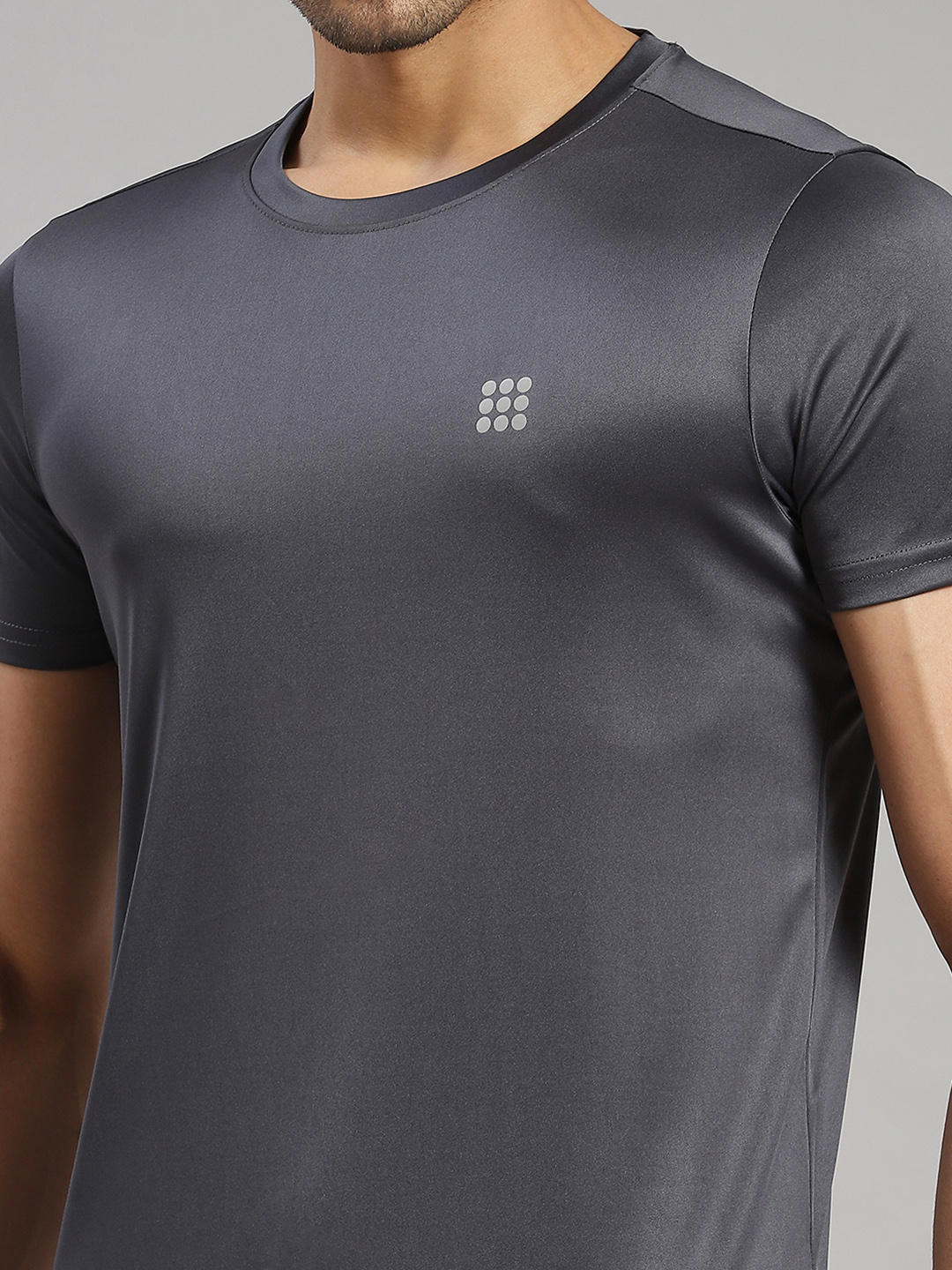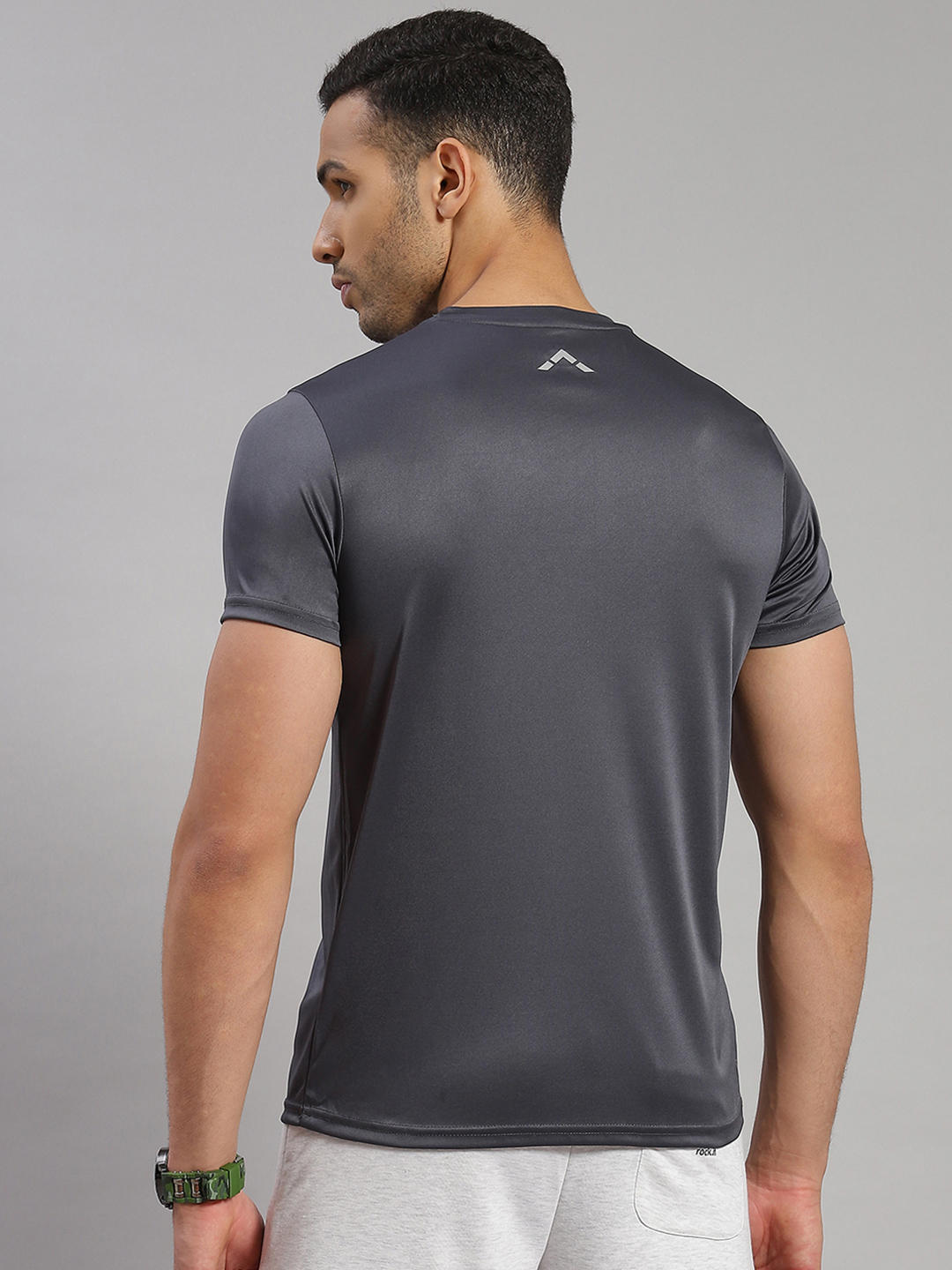 Men Polyester Blend Grey Solid Round Neck T-Shirt