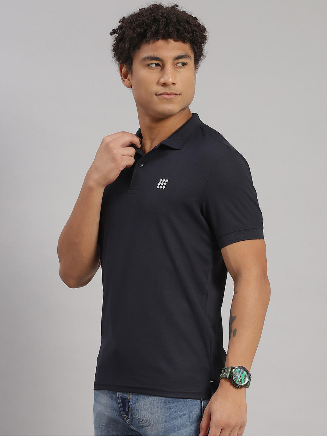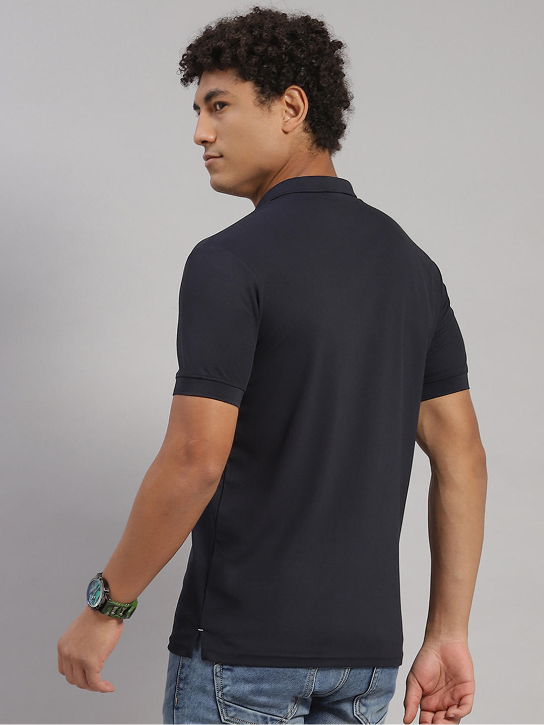 Men Polyester Blend Navy Blue Solid T-Shirt