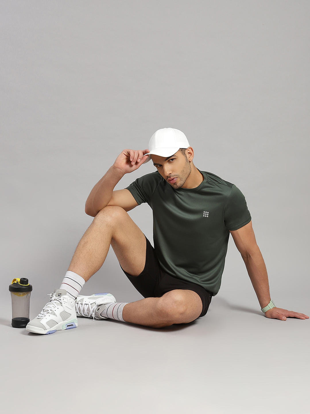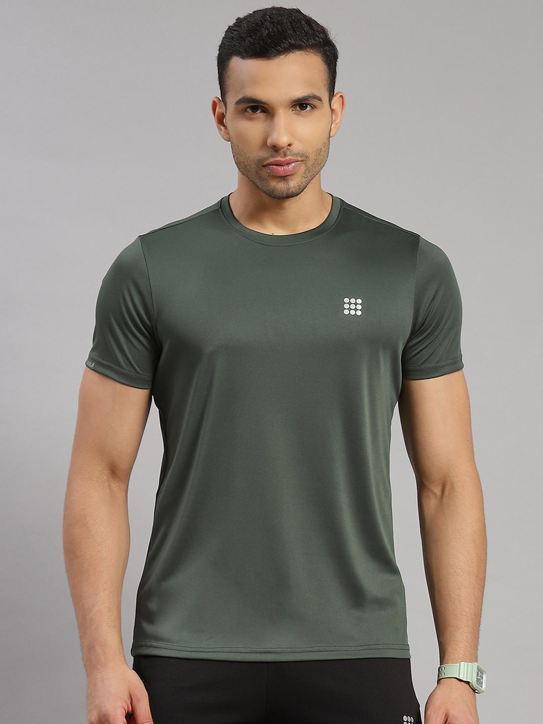 Men Polyester Blend Olive Solid Round Neck T-Shirt