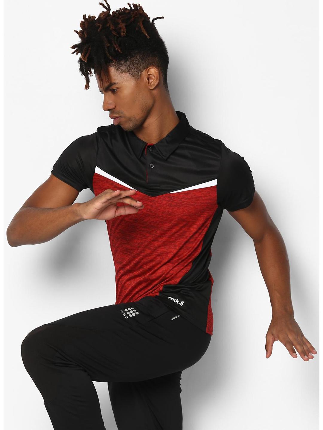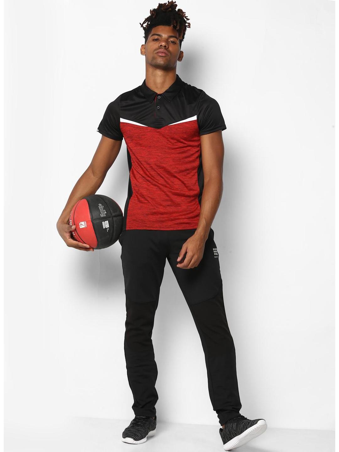 Men Red Black Collar Smart Fit T-Shirt