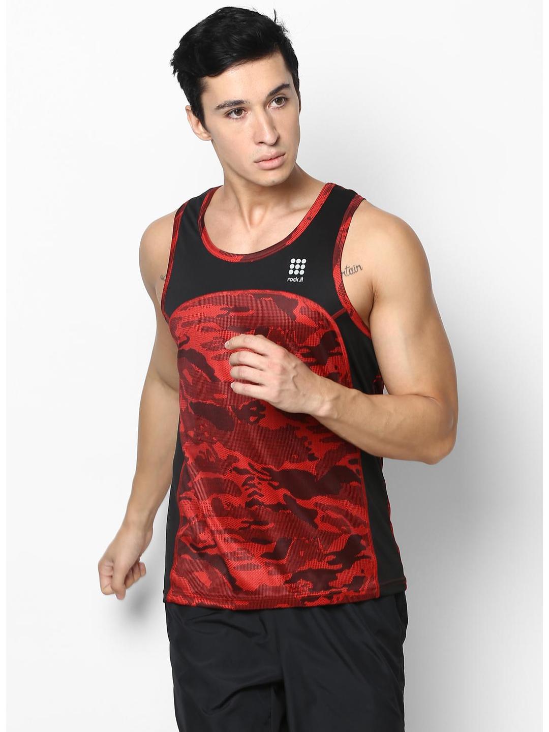 Men Black Red Round Neck Smart Fit Sandow