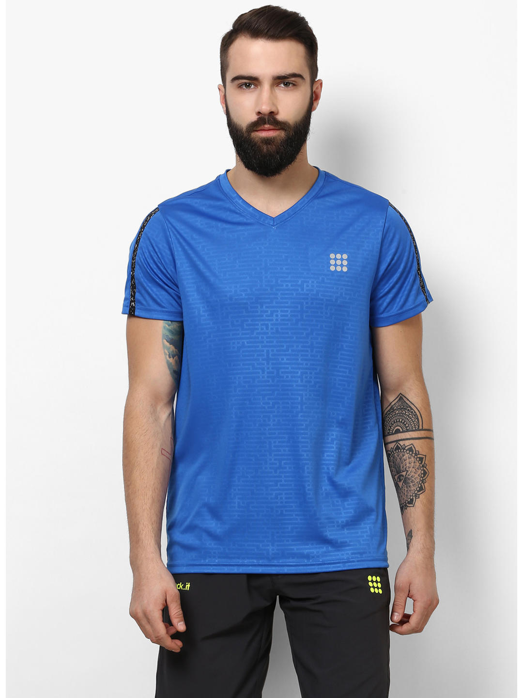Men Royal Blue V Neck Smart Fit T-Shirt