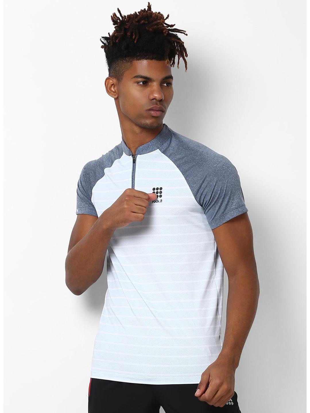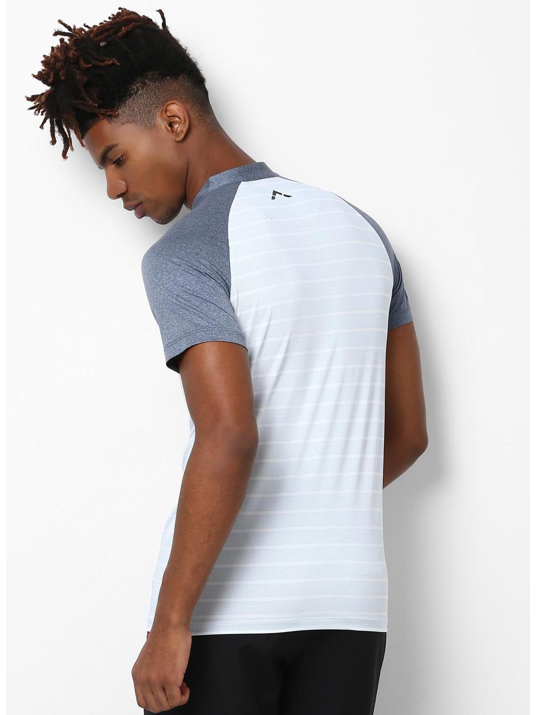 Mens Polyester Blend White Printed Collar T-Shirt