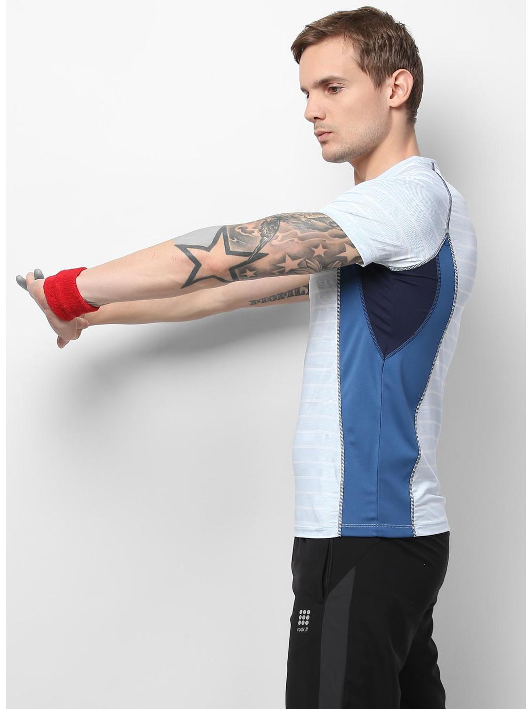 Men Sky Blue Round Neck Slim T-Shirt