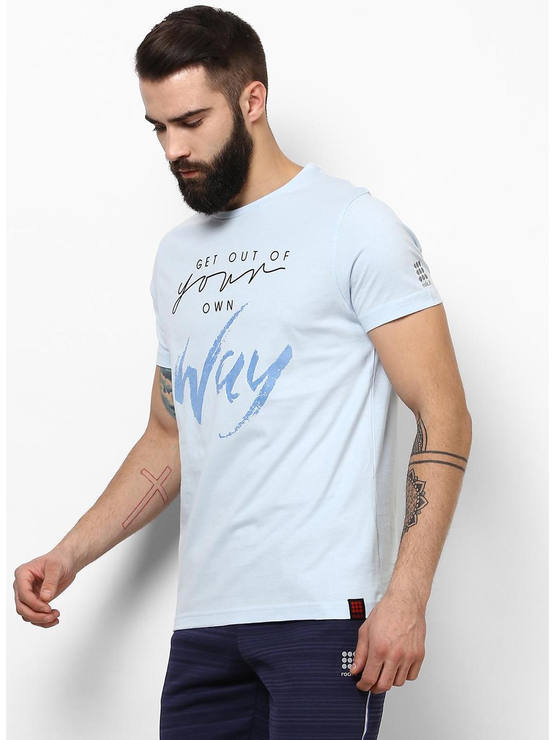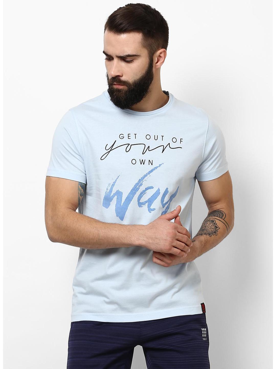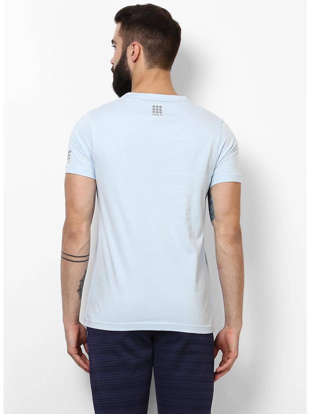 Men Sky Blue Round Neck Smart Fit T-Shirt