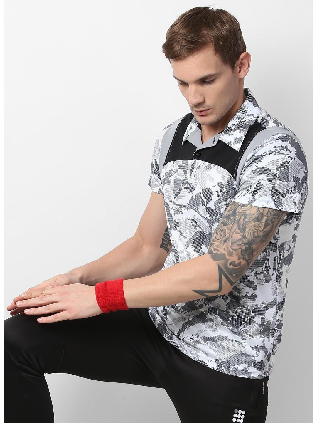 Men Black Printed Collar Half Sleeve T-Shirt