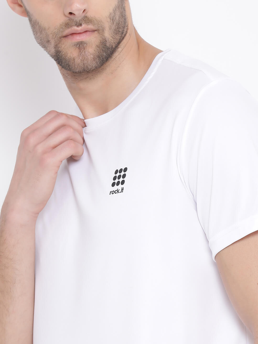 Mens Polyester Blend White Printed Collar T-Shirt