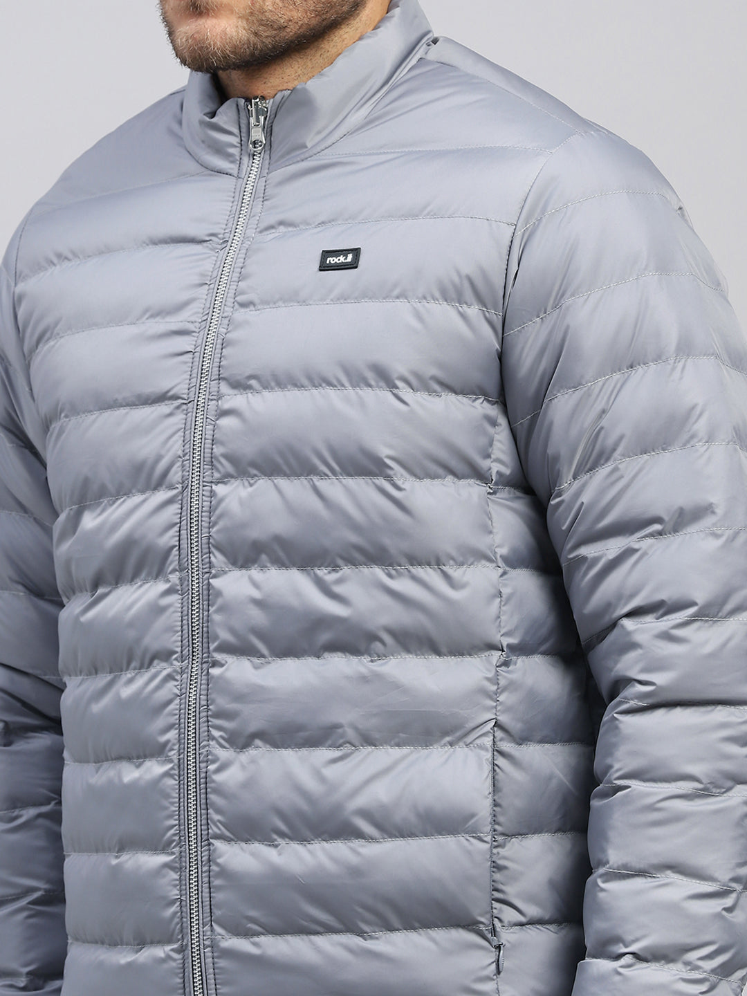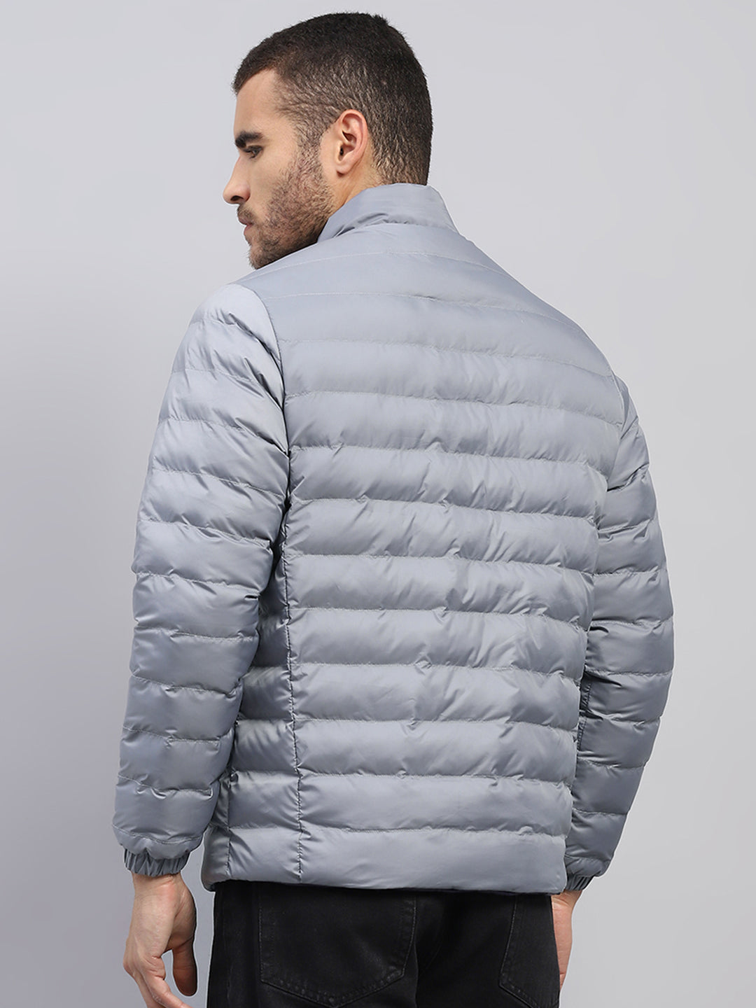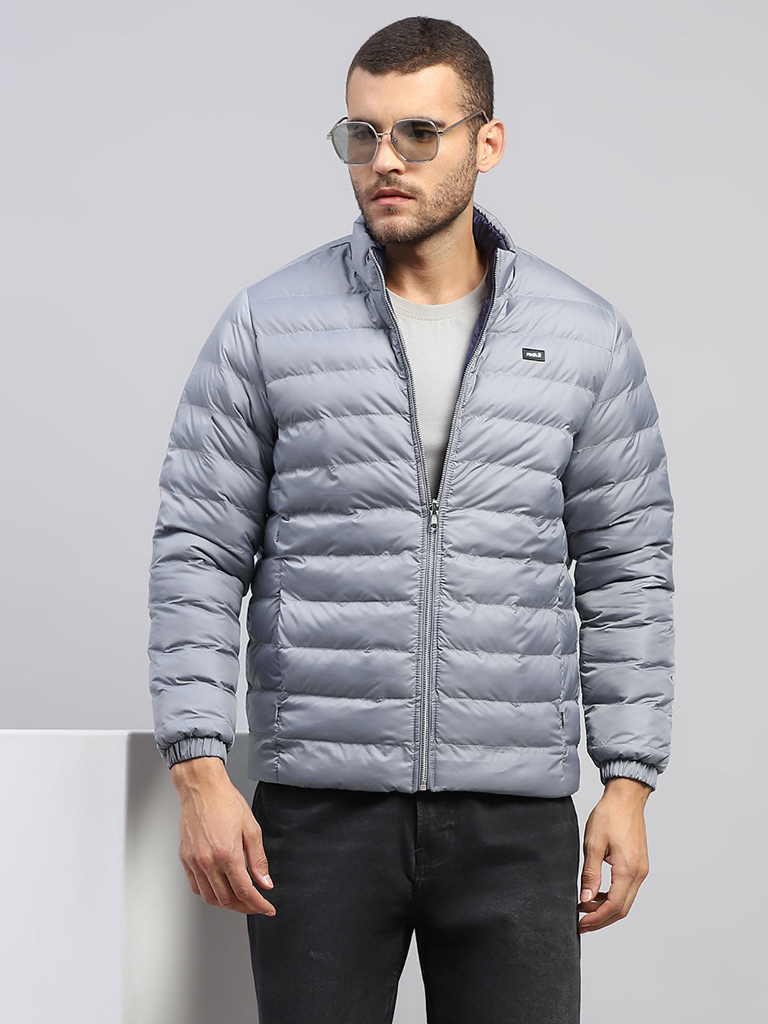 Men Grey Solid Collar Full Sleeve Reversible Jacket