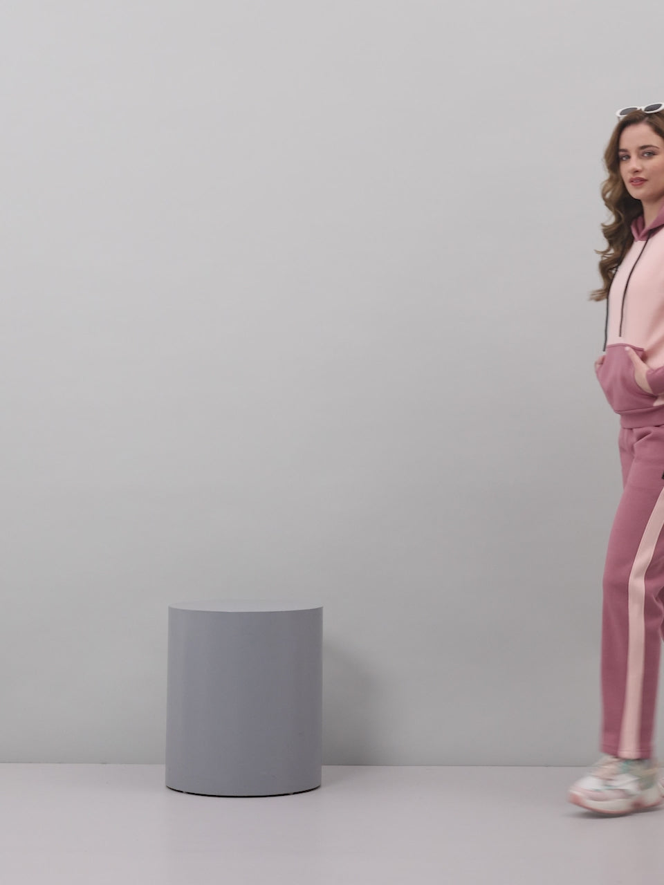 Women Mauve Solid Hooded Full Sleeve Winter Tracksuit