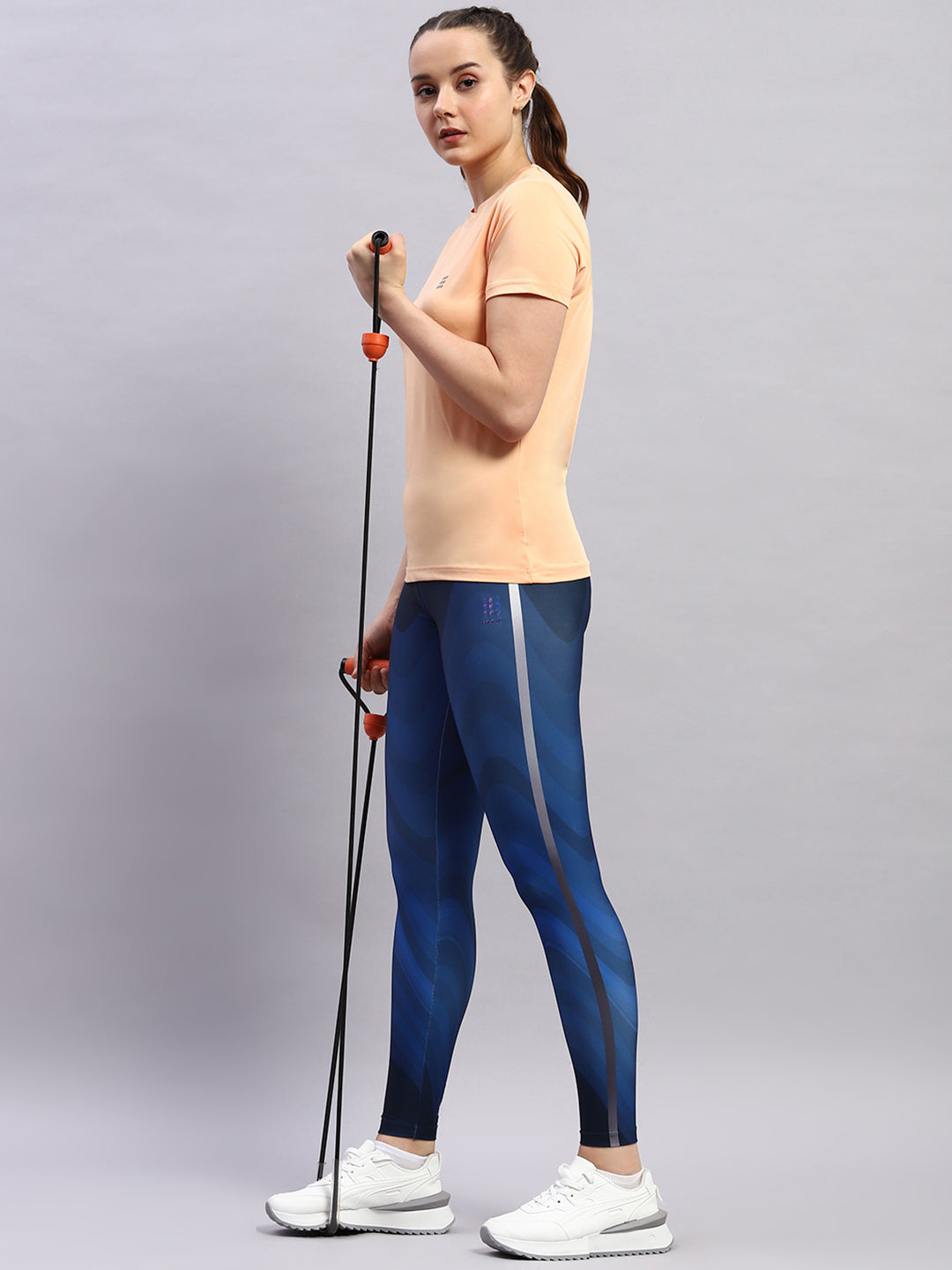 Women Peach Solid Round Neck Half Sleeve Top