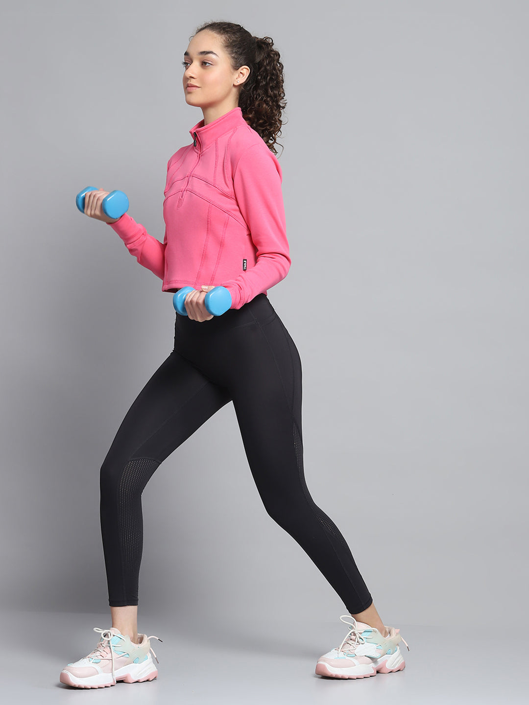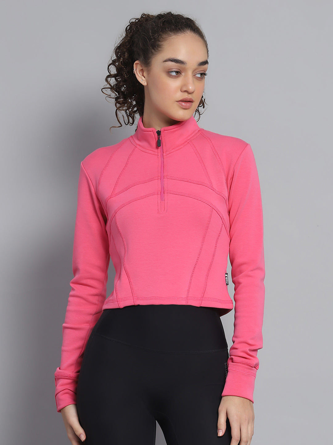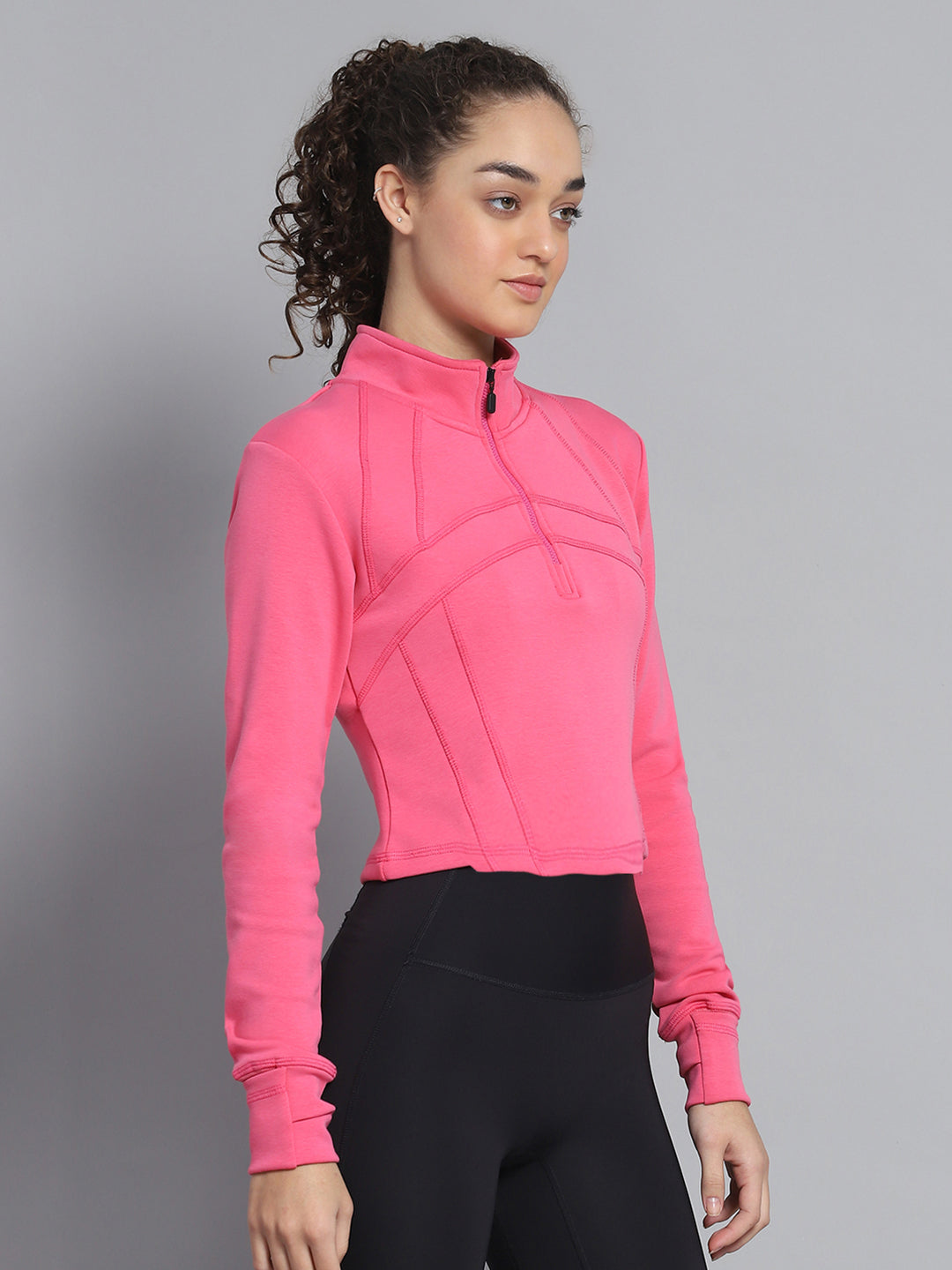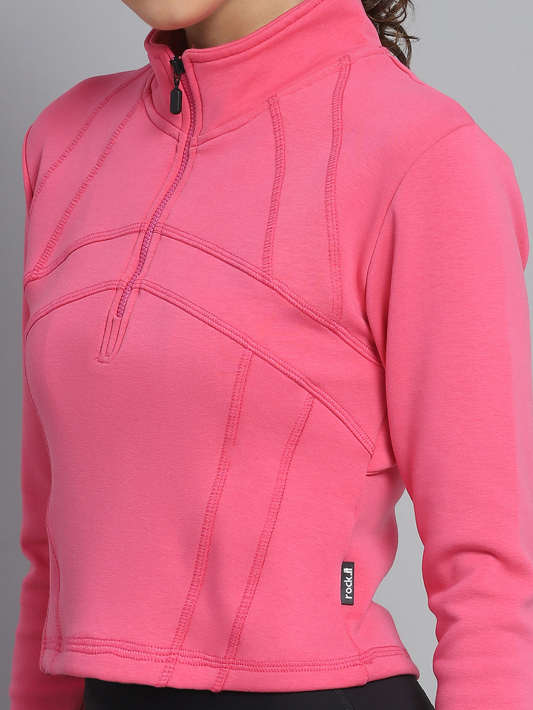 Women Pink Solid Mock Neck Full Sleeve Sweatshirt