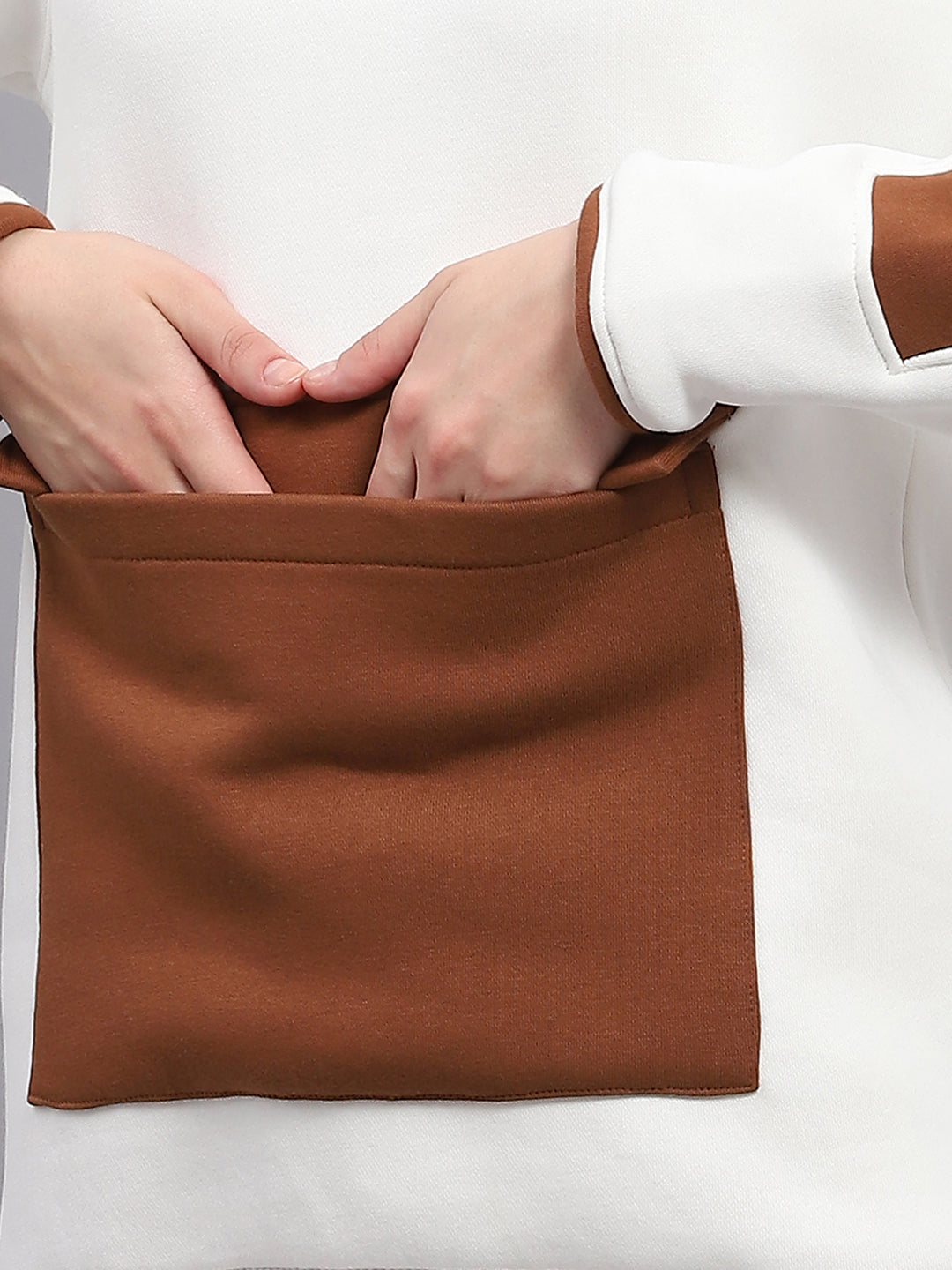 Women White Solid Mock Neck Full Sleeve Sweatshirt